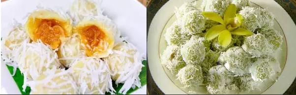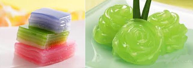 1.椰子糕(Kha Nom Chan):以椰浆为主料,加进芋头、蛋黄等材料,有多种口味供您选择。吃起来比娘惹糕口感更好。