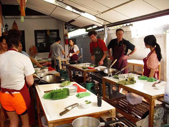 参加泰国兰花烹饪学校的烹饪课程前,厨师会先带游客观光当地著名的市场,随后才会在他们的家中开始他们的泰餐教学。