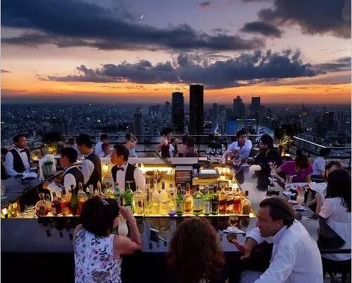 Vertigo Grill & Moon 是在Banyan Tree酒店61楼的顶层露台,四周并不高的玻璃围栏让你感觉自己是在云端用餐。向外望,整个曼谷的天际线尽收眼底,在此处看曼谷的日落最为美妙。需要提前预约,着装需略正式,若身着无领T恤、短裤、拖鞋不得入内。旁边的Moon Bar也是俯瞰曼谷夜景的 好地方,在这里求婚应该是绝顶浪漫的事,旁边的外国游客会为你打气的!