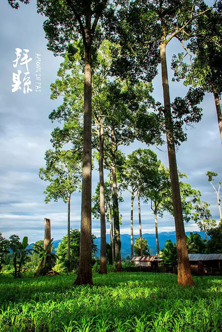 偶尔迎面就是有着苍天一样高大树的丛林小村庄。