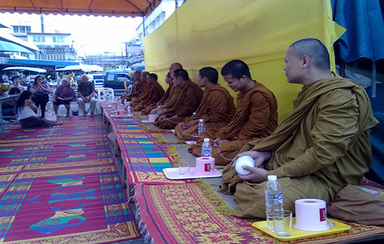 1、13号早上的时候,泰国古代一般是会自家准备菜、甜品去寺庙布施给和尚,现在基本上都是买下面的这个“桶”来代替菜和甜品了。(“桶”里会装有日用品、食物、布、香烛、日常药物等)